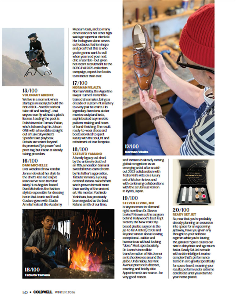 The Coldwell 100 highlights figures whose work defines the highest levels of their respective fields, placing artisans alongside leaders in architecture, gastronomy, art, and innovation. Vilalta’s inclusion underscores the role of independent makers in shaping the future of luxury through originality, precision, and depth of craft.