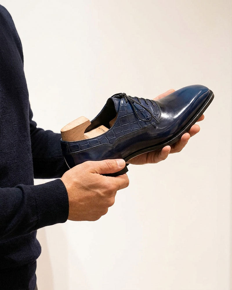 A fully handmade shoe tends to feel different on foot. It adapts more gradually, responding to the way the wearer moves.