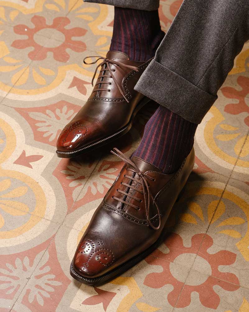 It’s a slightly more expressive alternative to the classic cap-toe — often the next step for those who already own a traditional Oxford and are ready for something with a touch more personality.