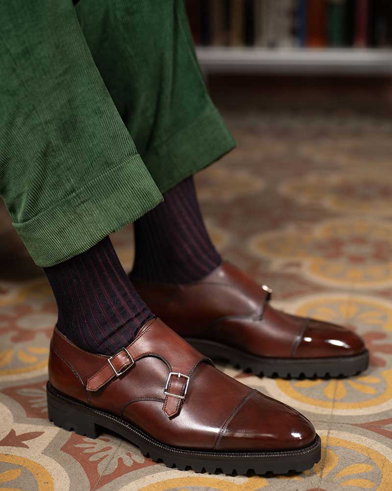 Historically, Double Monk shoes were a sure sign of luxury. In earlier centuries, metal was expensive—certainly not something you saw on everyone’s feet. So a pair of shoes that boasted not one, but two gleaming buckles said, “I value craftsmanship, and I’m not afraid to show it.”
