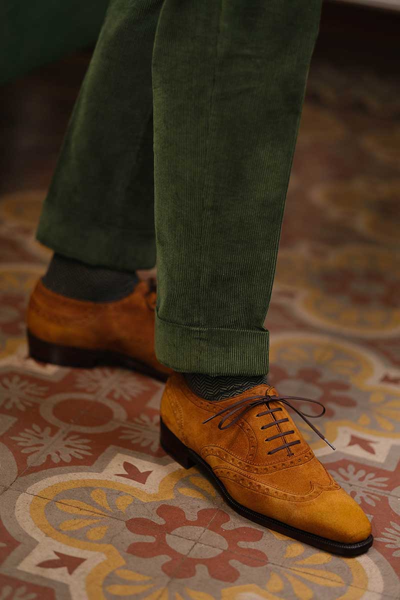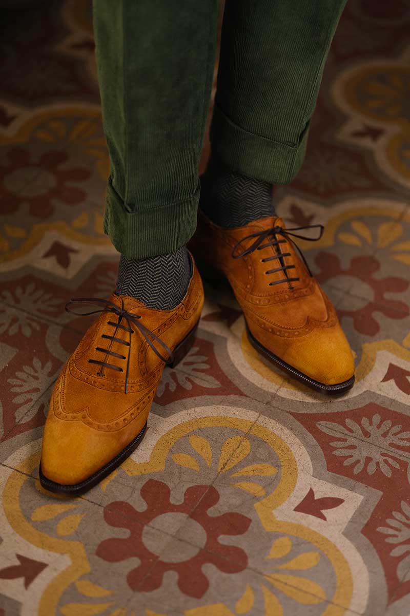 When it comes to styling, the Amber Handmade Patina is remarkably versatile. Wear the Alvaro with a classic navy or grey suit for formal occasions, or pair it with casual chinos in earthy hues for a more relaxed look. Even denim takes on fresh sophistication when matched with these refined brogues.