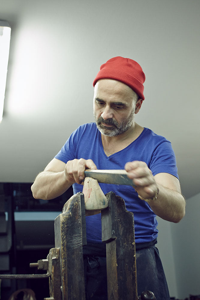 Every shoe is meticulously hand-finished by our artisan team in our Barcelona workshop, a rarity for any ready-to-wear collection. Visitors to our store in Barcelona can witness this craftsmanship firsthand.
