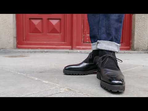 - French Box Vegano Inca leather from Tanneries du Annonay combined with luxurious suede from Charles Stead